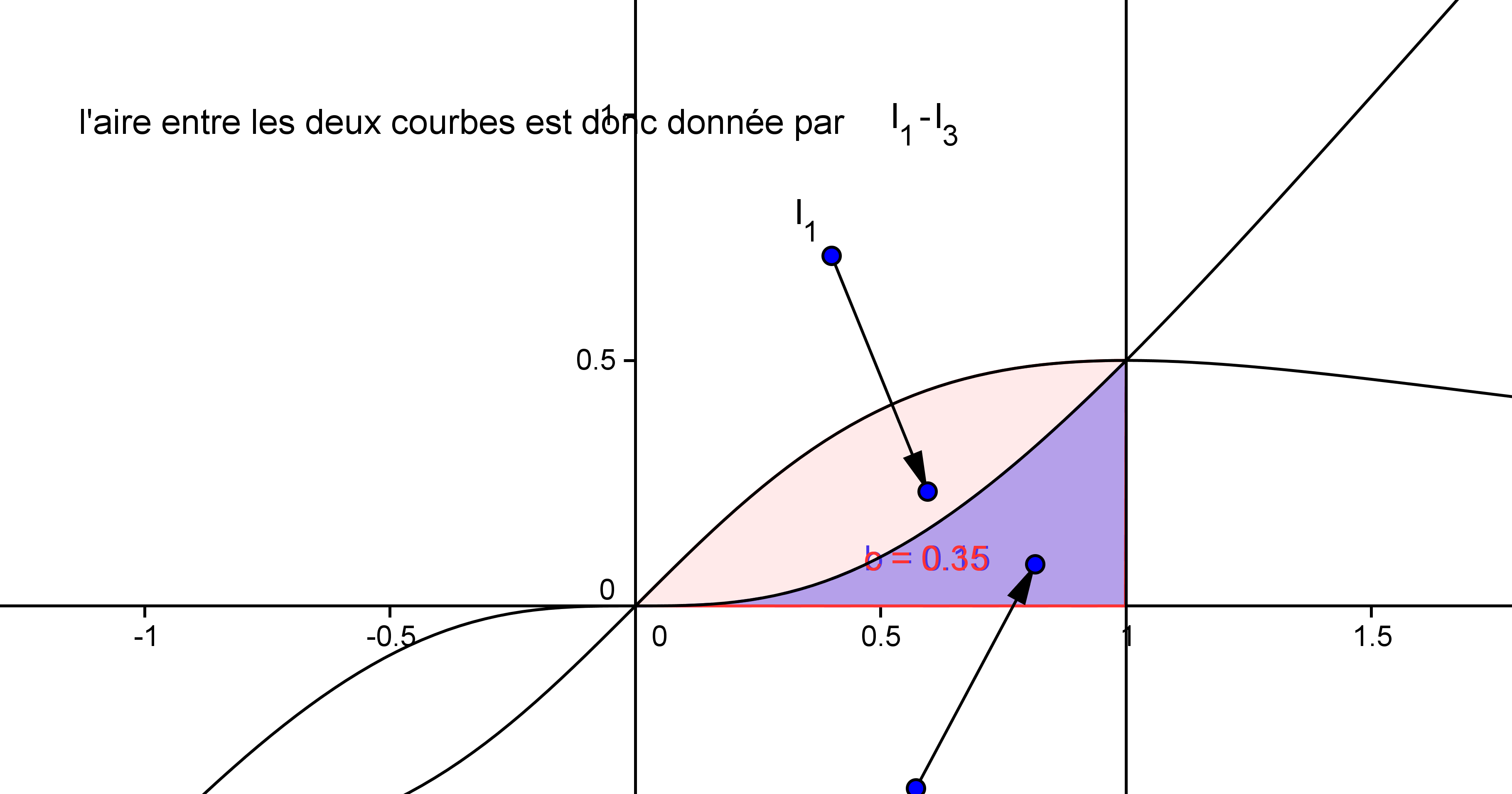 Donc l'aire coincée entre les deux courbes vaut \(I_1-I_3\)
