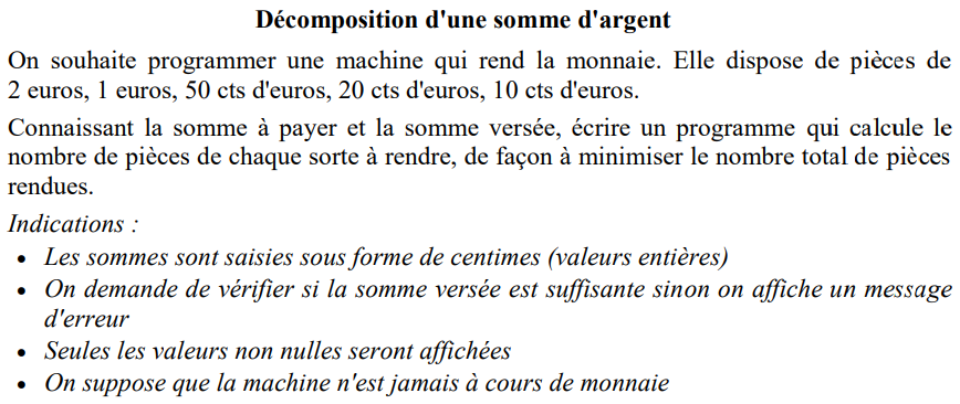 rendu=recu-montantreçu = c'est ce que donne l'utilisateur