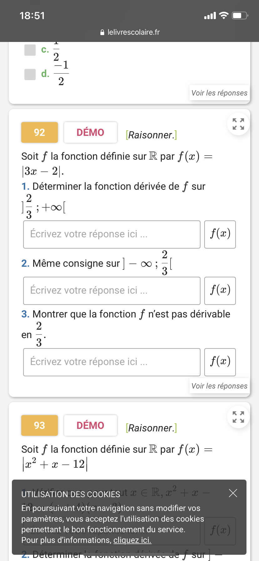 Tu peux ensuite, calculer les dérivées sur les intervalles \(\left]-\infty\,;\,\dfrac{2}{3}\right[\) et \(\left]\dfrac{2}{3}\,;\,+\infty\right[\) comme demandé. Tu constateras un souci en \(\dfrac{2}{3}\).