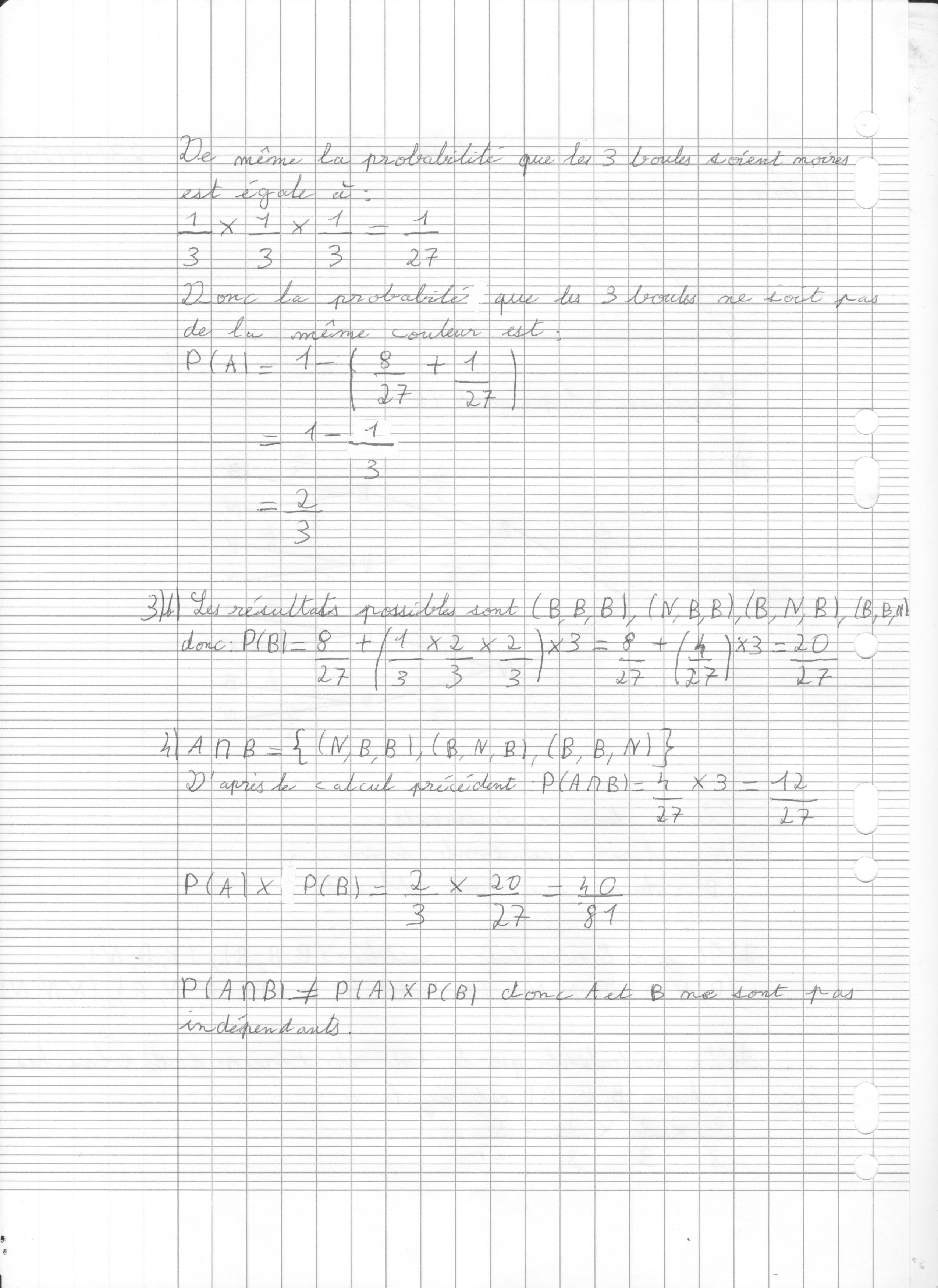 Par exemple pour le chemin "Bl-Bl-N" la probabilité est \(\frac{2}{3}\times \frac{2}{3}\times \frac{1}{3}\) = \(\frac{4}{27}\).