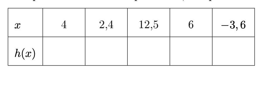 Bob a calculé les images d'une fonction h donnée par son professeur et a noté ses résultats de la manière suivante :