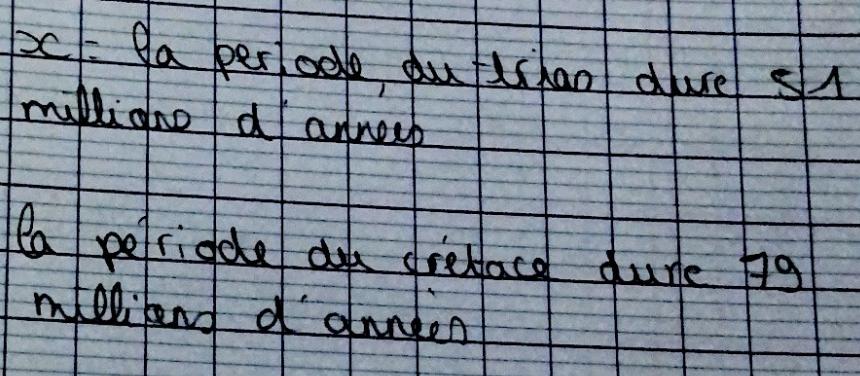 il te faut maintenant répondre à la question de l'exercice qui est : A quelle date a commencé le crétacé.