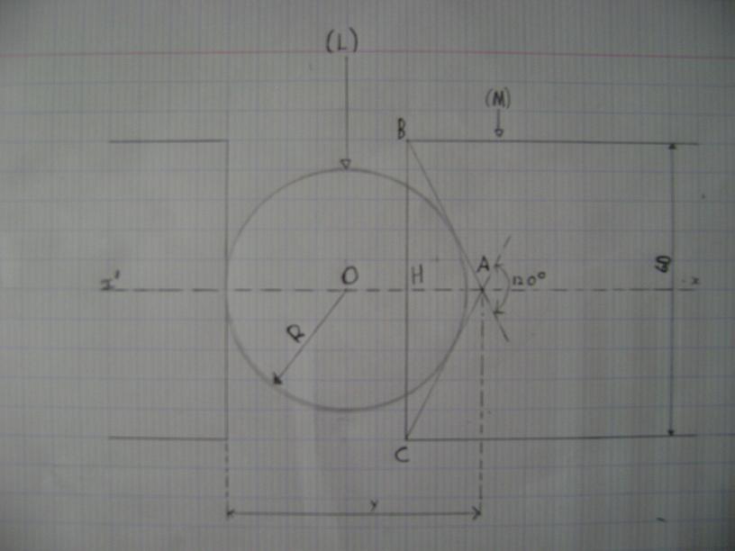 En gros , il faut nommer le point de tangence entre la droite AB et le cercle(L) ce qui forme un angle droit donc un triangle rectangle en ce point et après avec tan calculer 0A. Quelqu'un peu m'aider à rédiger la première réponse ?