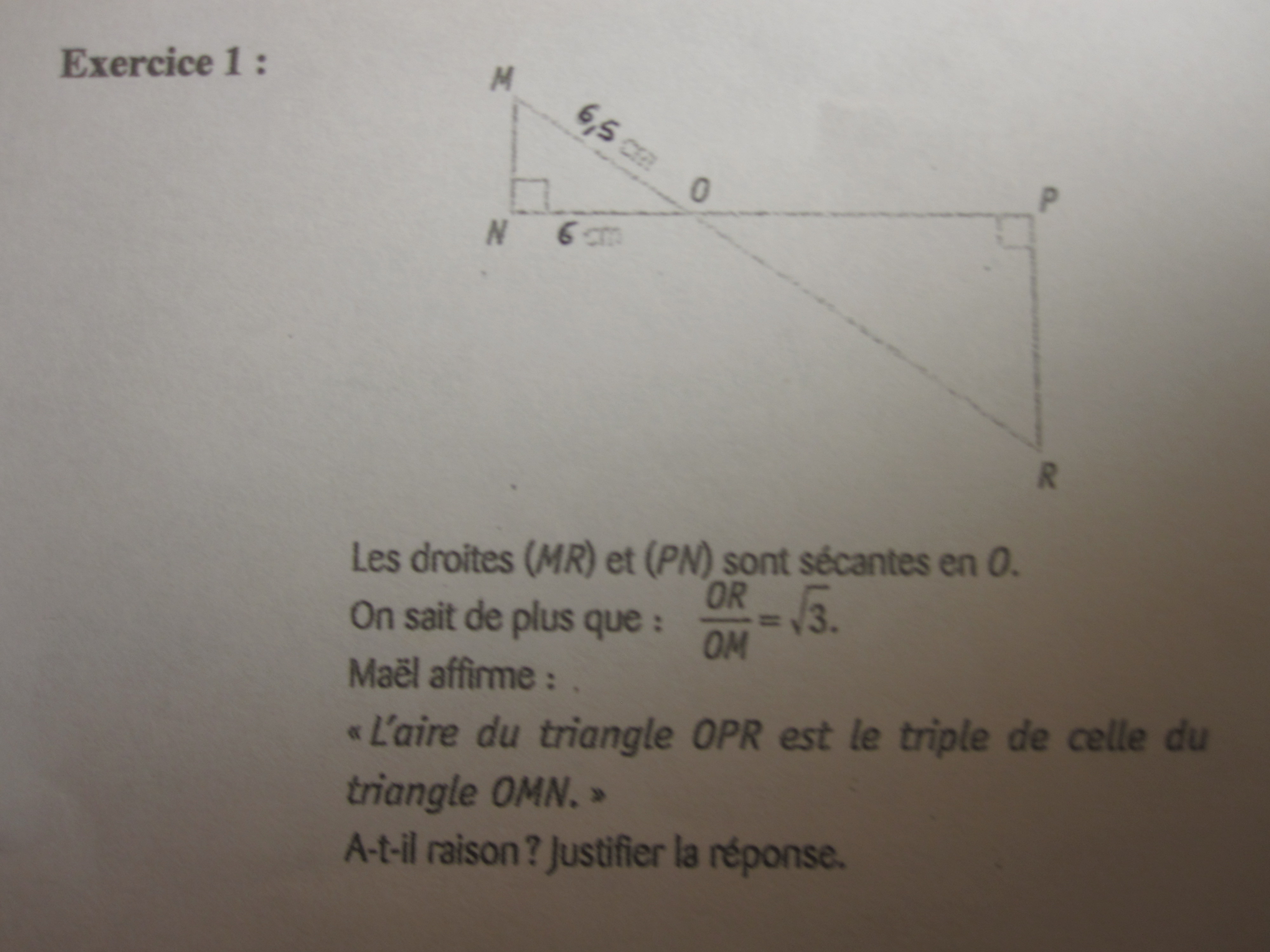 Manifestement, vous êtes en présence d'une situation de Thalès, puisque les droites (MN) et (PR) sont parallèles (à démontrer).