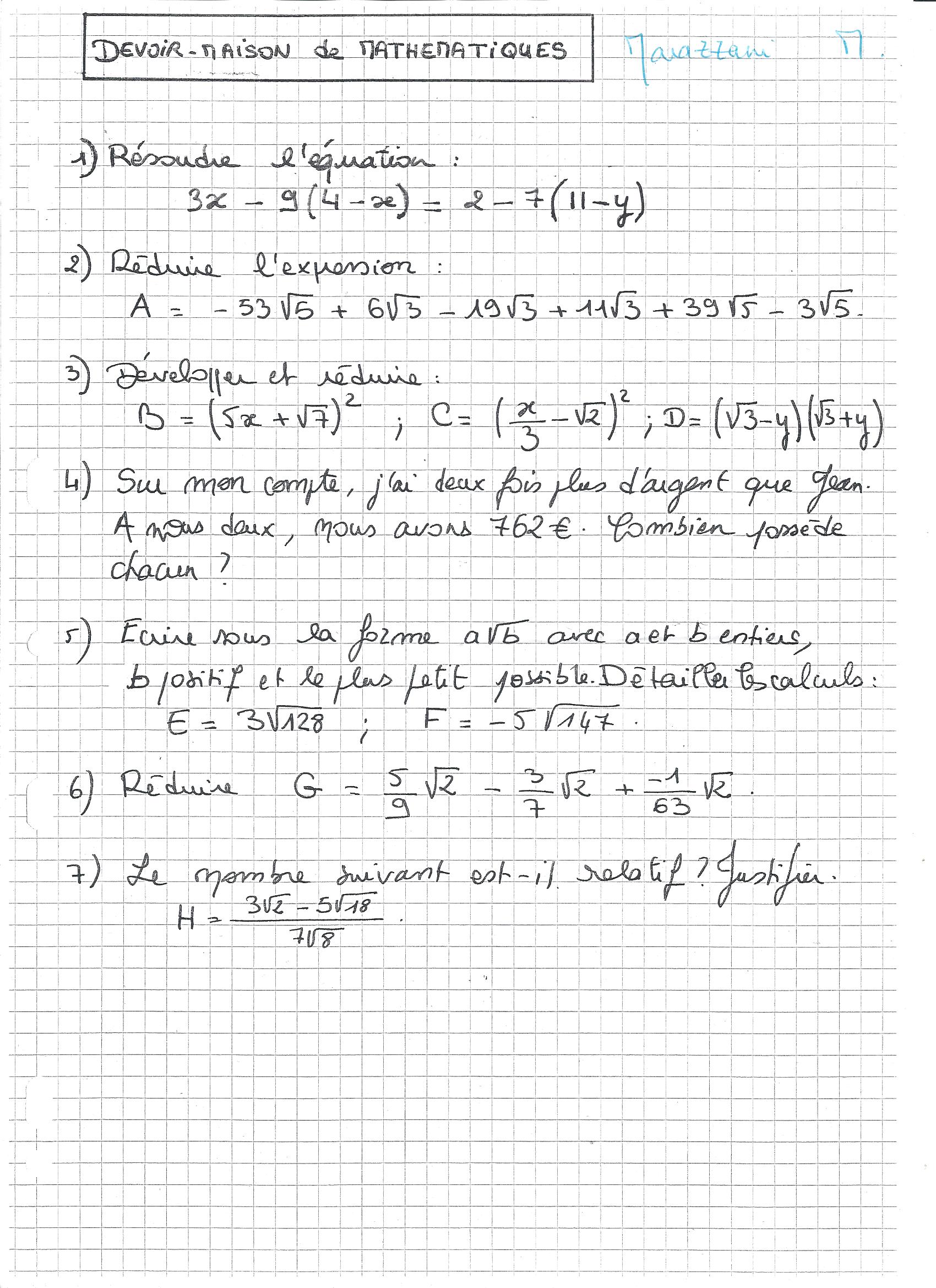Devoir Maison sur les "Racines carrés d'un nombre positif"