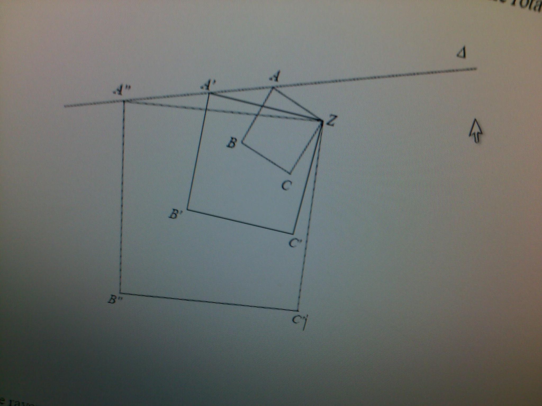 si tu considère la rotation r de centre Z et d'angle \(\frac{\pi}{2}\), alors dans chaque carré, on aura r(A)=C, r(A')=B' et r(A")=C".
