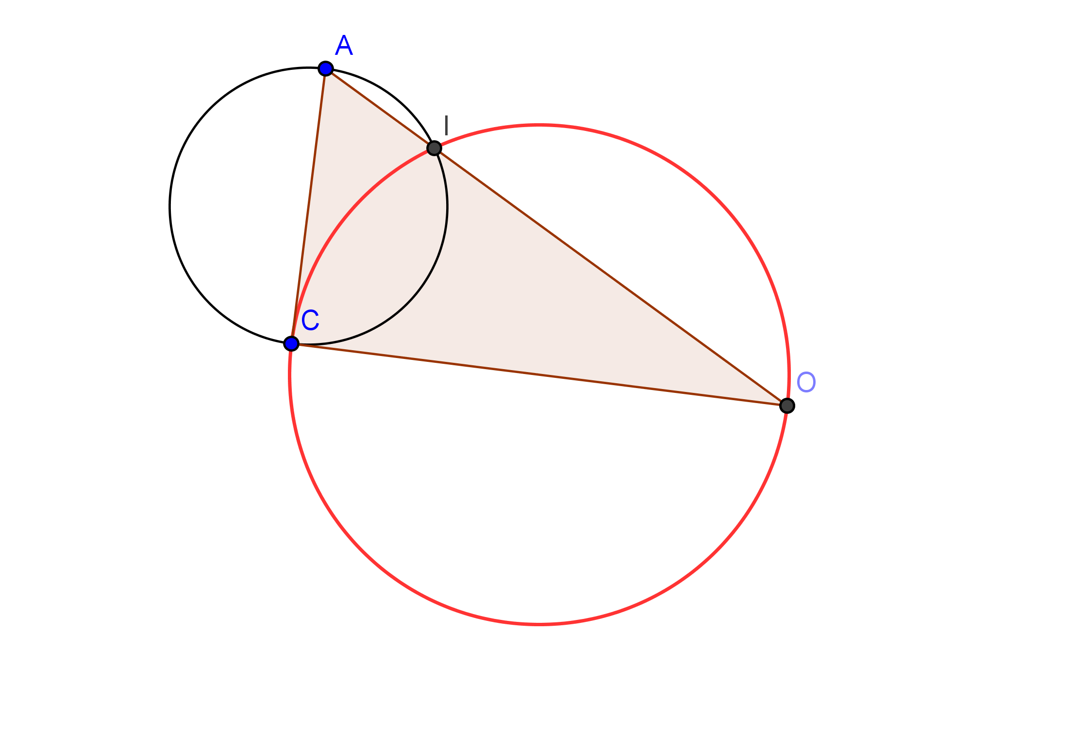 1. tracer un traingle AOC rectangle en C. tracer le cercle de diam. [OC] ; il coupe l hypotenuse du triangle AOC au point I .