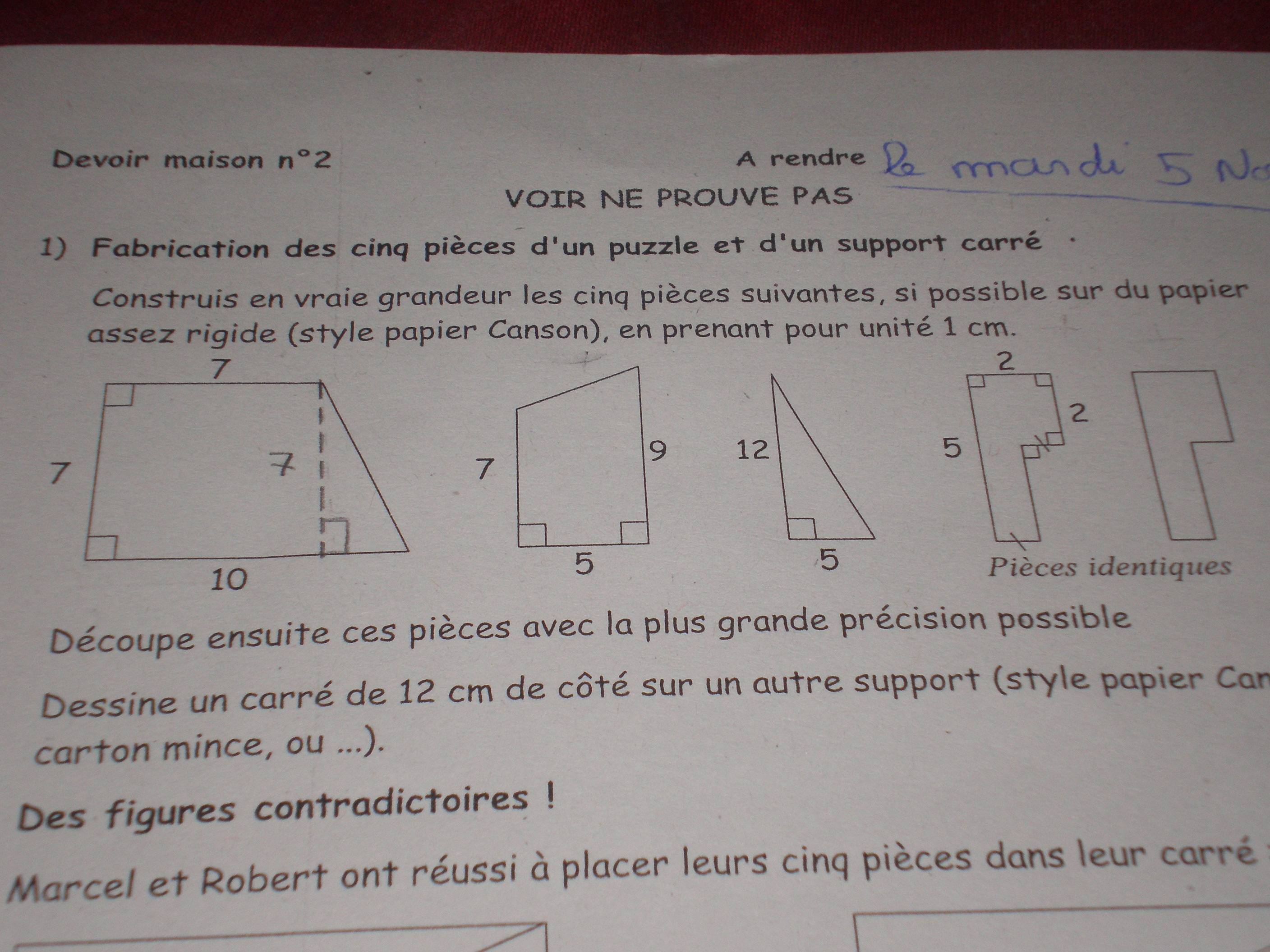 bonjour sos math j ai un devoir maison a faire pour la rentrer pouvez vous m'expliquer pour le " 3)" les calculs d air je vous est envoyer la feuille en 2 partie