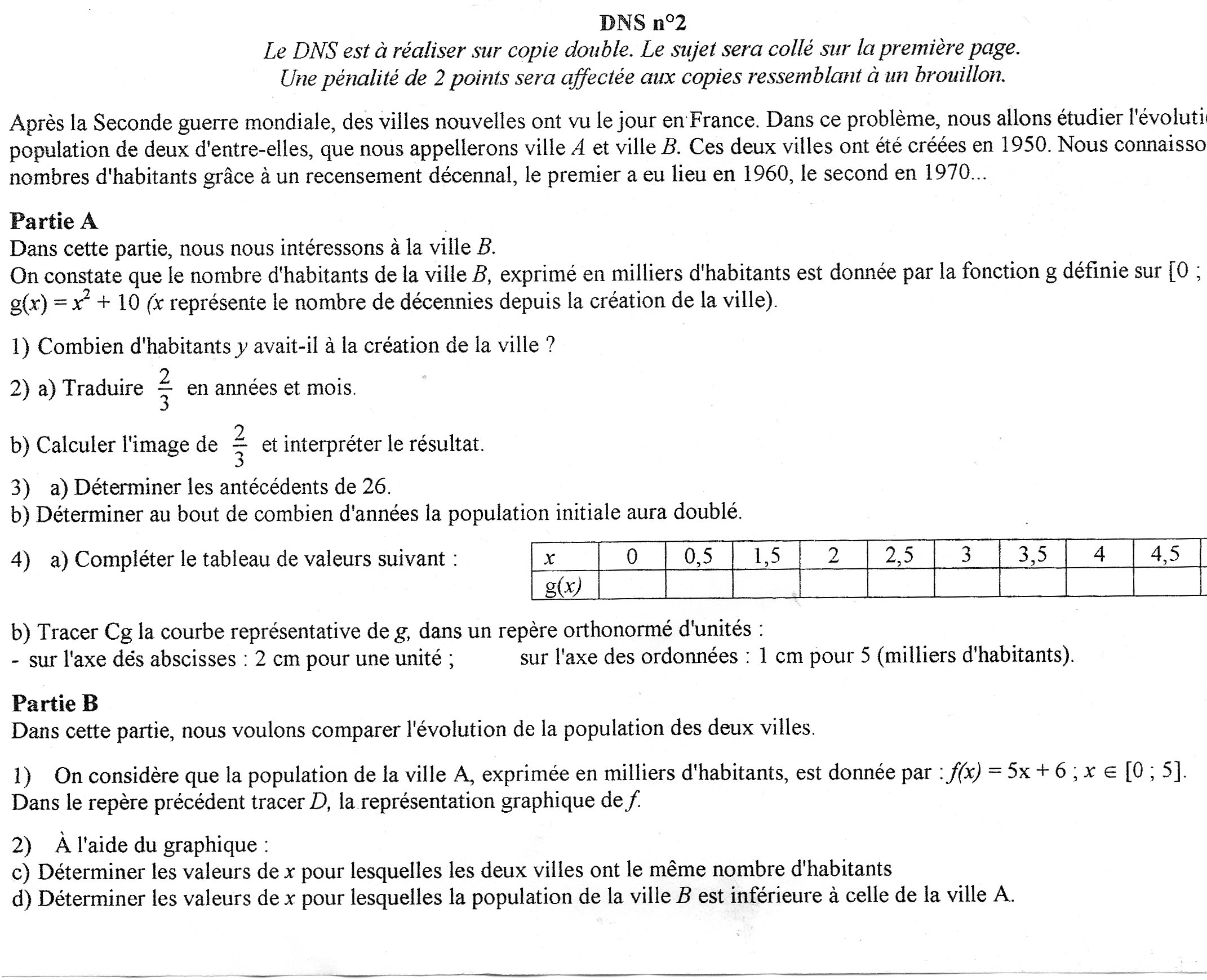 Après la Seconde guerre mondiale, des Villes nouvelles ont vu le jour en France. Dans ce problème, nous allons étudier l'évolution de la population de deux d'entre-elles, que nous appellerons ville A et ville B. Ces deux villes ont été créées en 1950. Nous connaissons leurs nombres d'habitants grâce à un recensement décennal, le premier a eu lieu en 1960, le second en 1970...