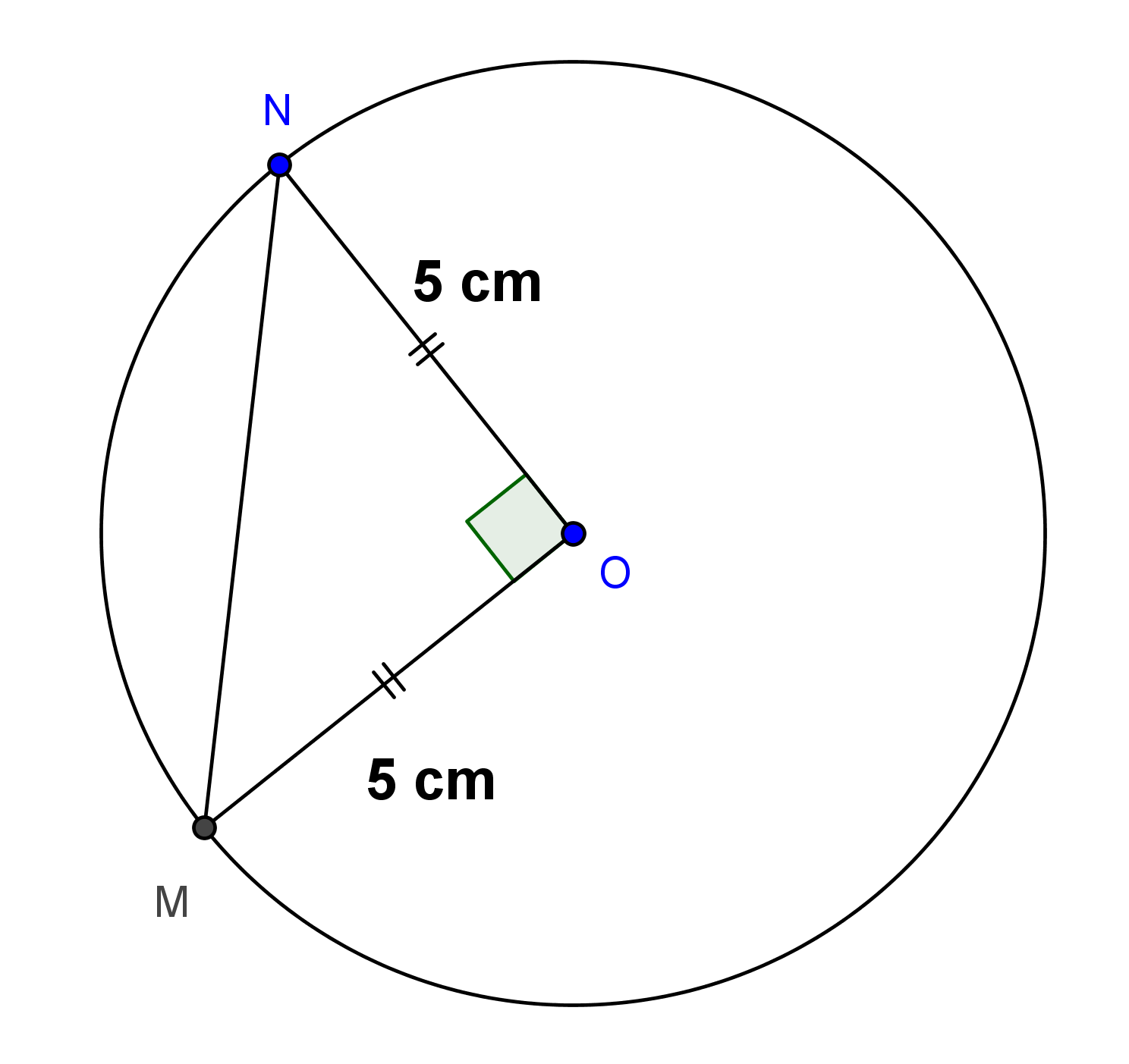 Le rayon du cylindre est de 5cm , les points M et N sont sur la circonférence du disque (base supérieure), MON est un angle droit.