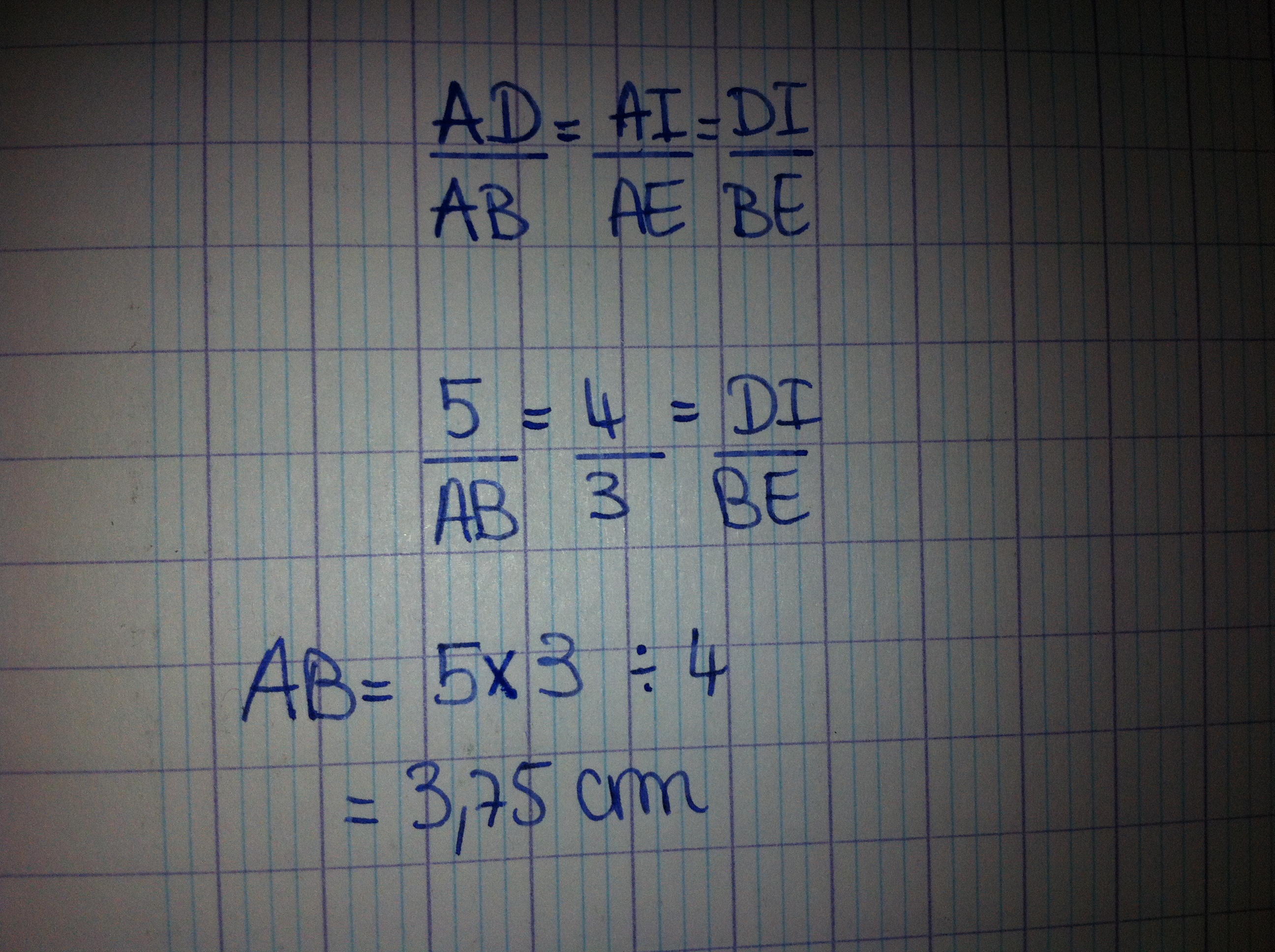 On donne AD = 5cm AI = 4cm EI = 1cm