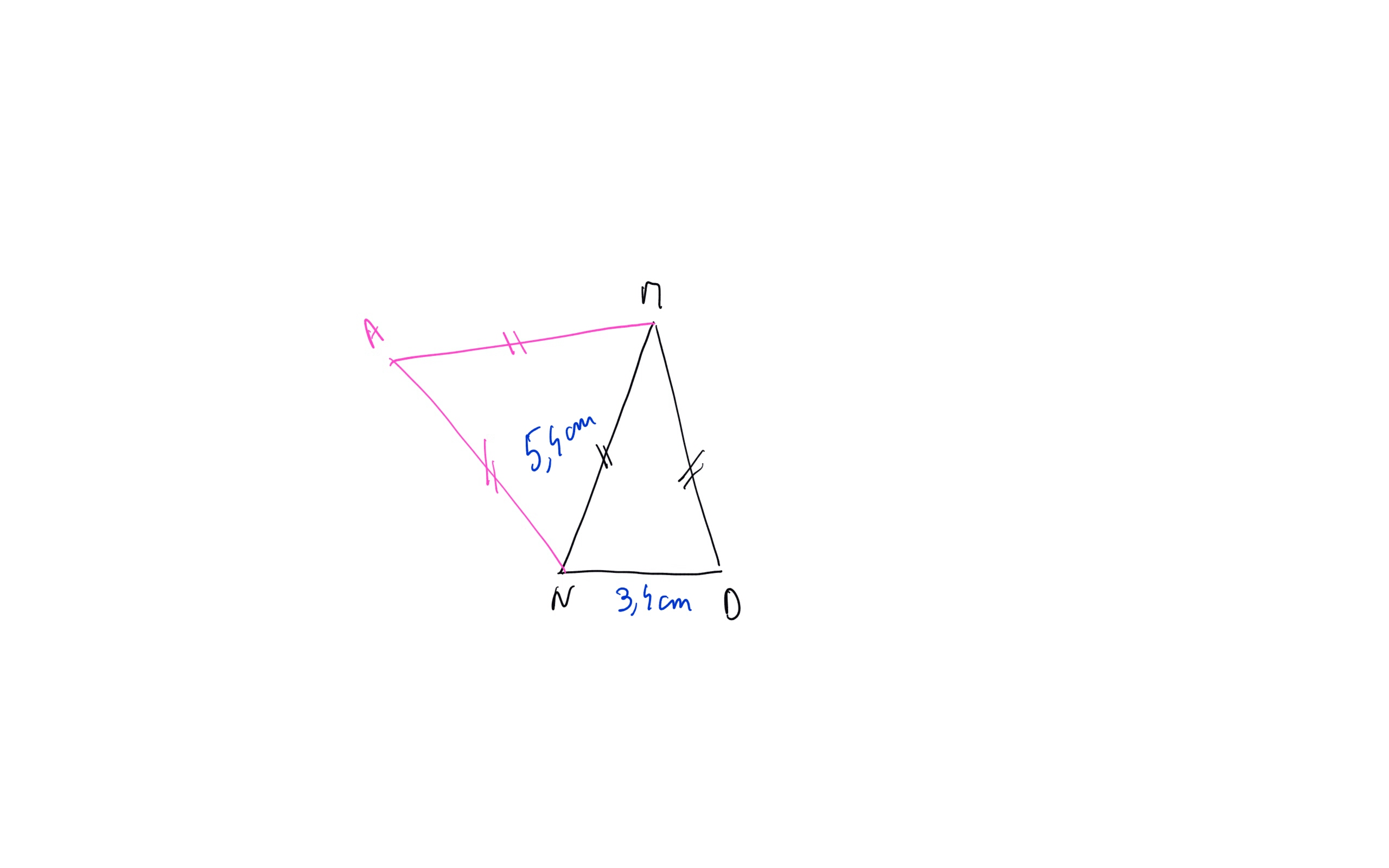Ensuite, le triangle MND est isocèle en M donc le segment [MD] mesure aussi 5,4 cm.