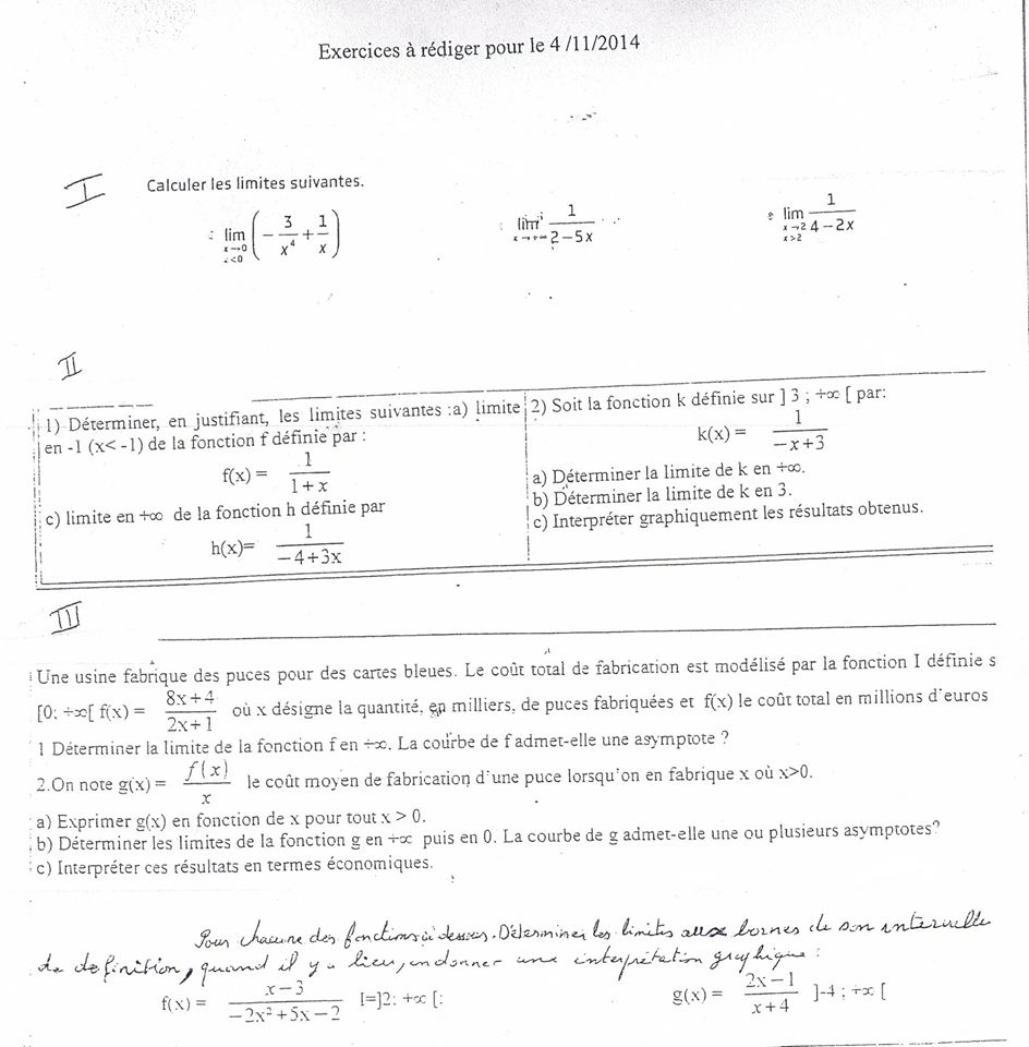 Mon prof de maths nous a donné à faire pendant les vacances un DM sur les limites et je n'y arrive pas du tout, tous comme les autres élèves de ma classe.
