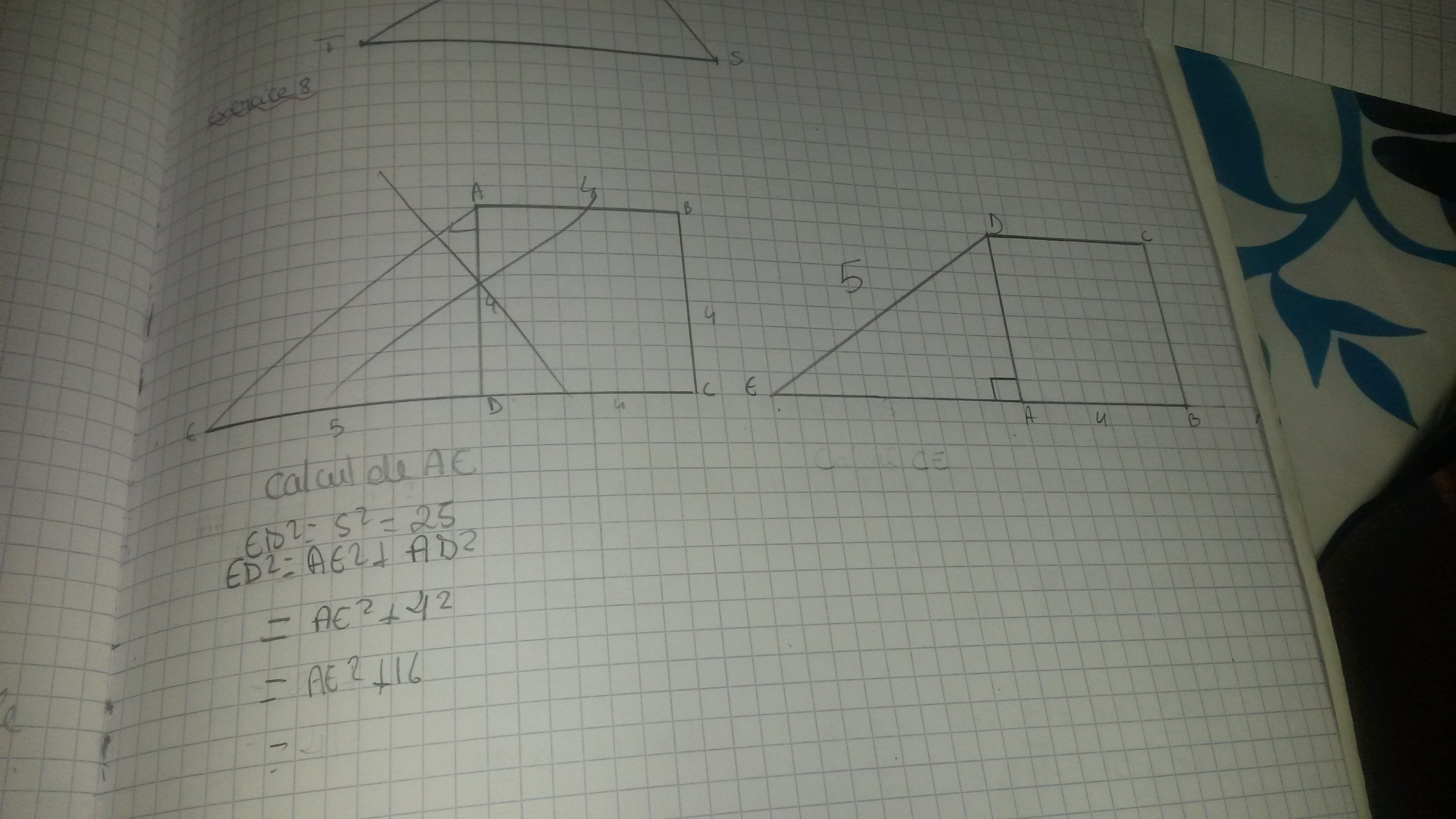 Je te conseille de l'appliquer dans le triangle ADE rectangle en A : tu trouveras AE.