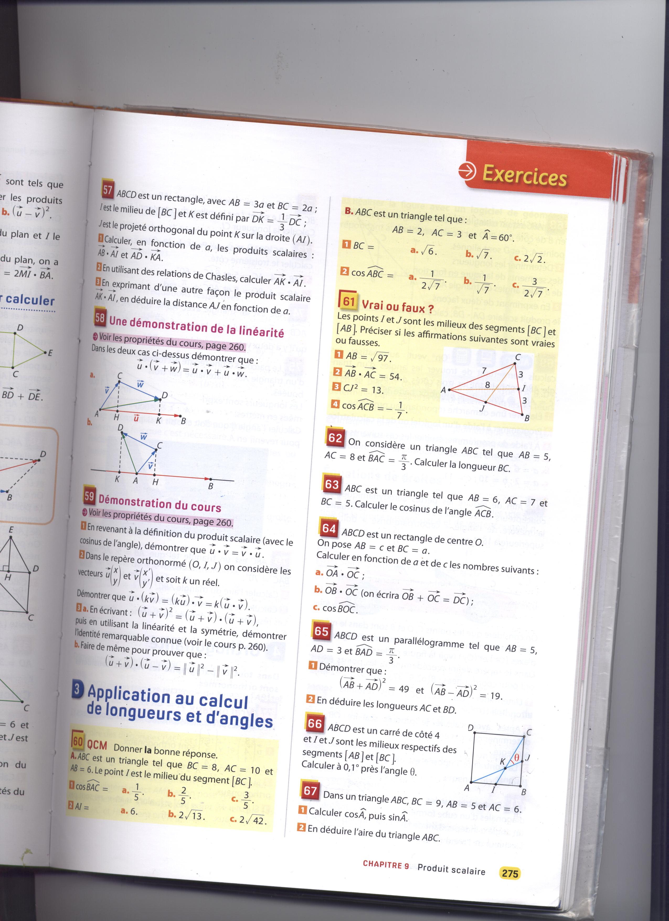Je dois faire l'exercice 66, mais je ne sais spas comment m'y prendre, dans quel triangle dois-je me placer et quels vecteurs utilisés ?