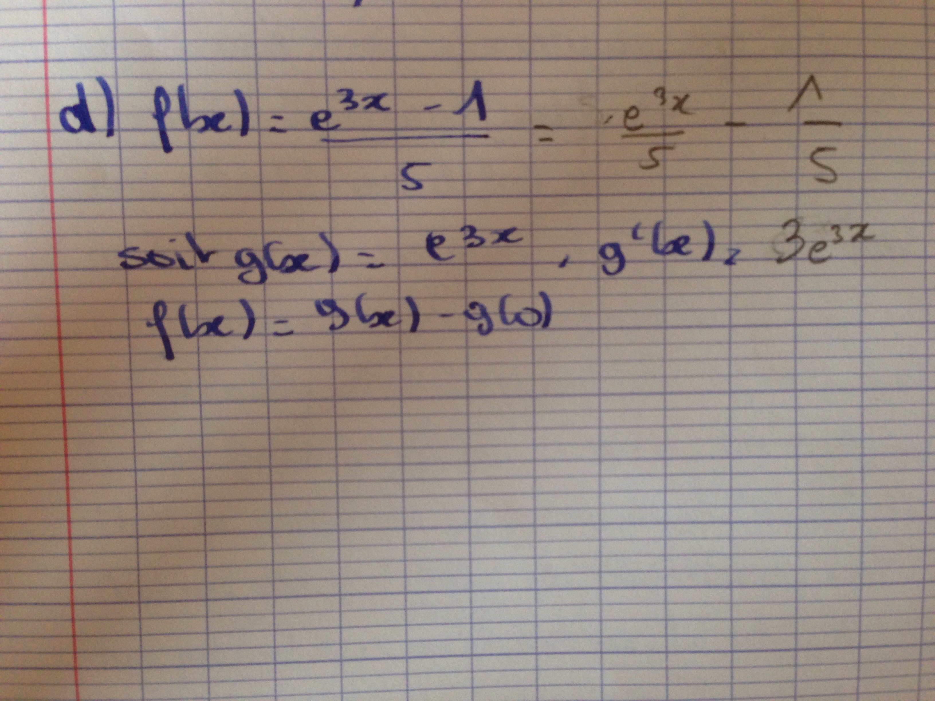 Remarque : moi, je vois \(f(x)=\frac{e^{3x}-1}{5x}\) et non \(f(x)=\frac{e^{3x}-1}{5}\).