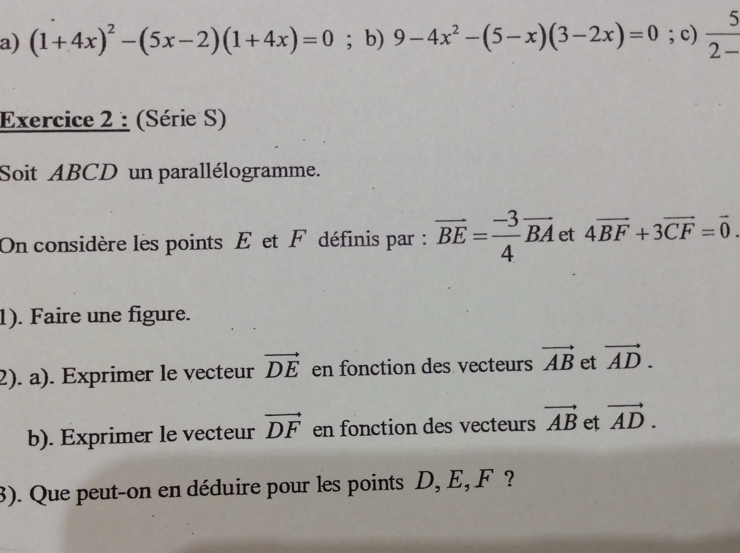 Mais je n'arrive pas à poursuive la réflexion et exprimer le vecteur DF en fonction de AB et AD