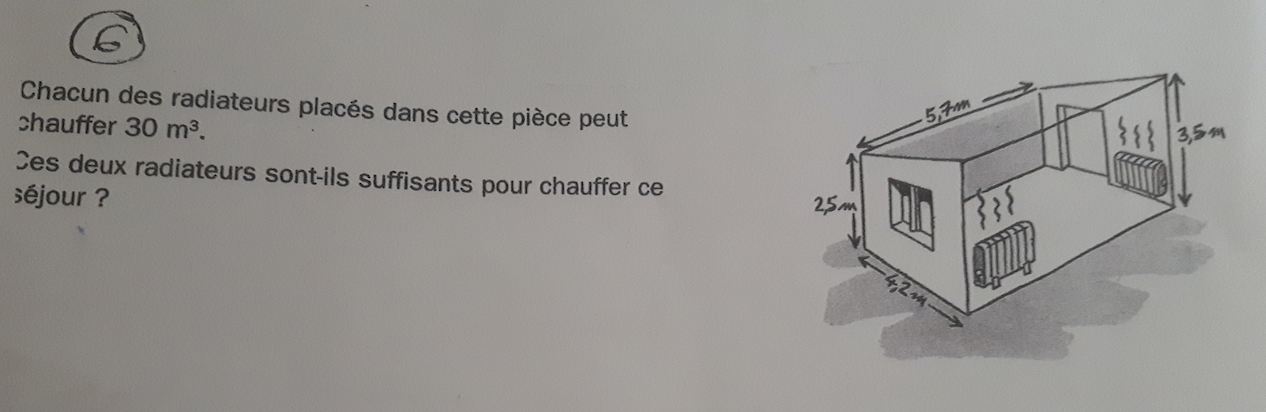 Pour calculer le volume total de la pièce à chauffer, découpe-la en 2 volumes que tu sais calculer.