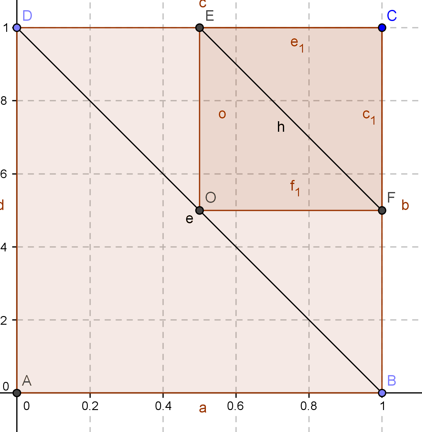 donc dans le carré 0 F C E je trace la diagonale FE pour avoir un deuxième triangle isocèle