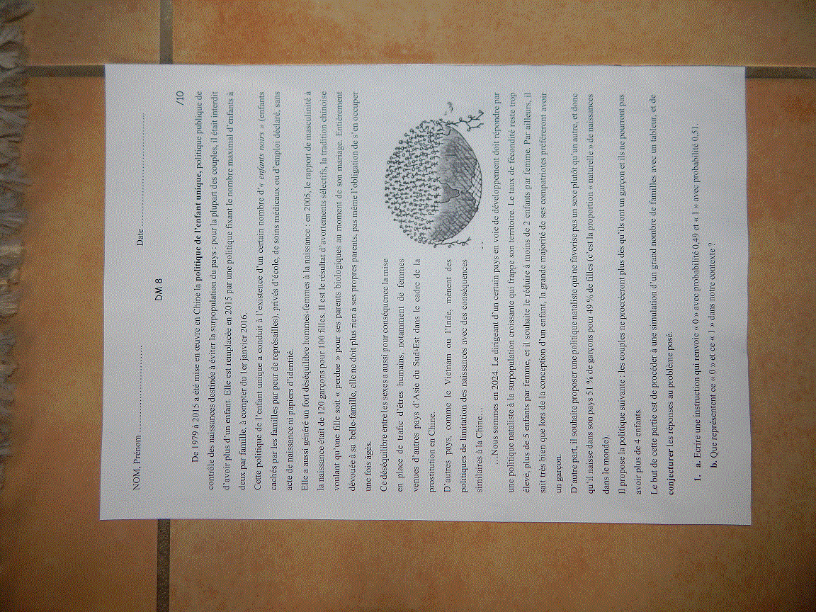 1 représente: il est fort probable que les familles est un garçon mais ne pourront plus avoir d'autre enfant un garçon par rapport à la politique envisagée.