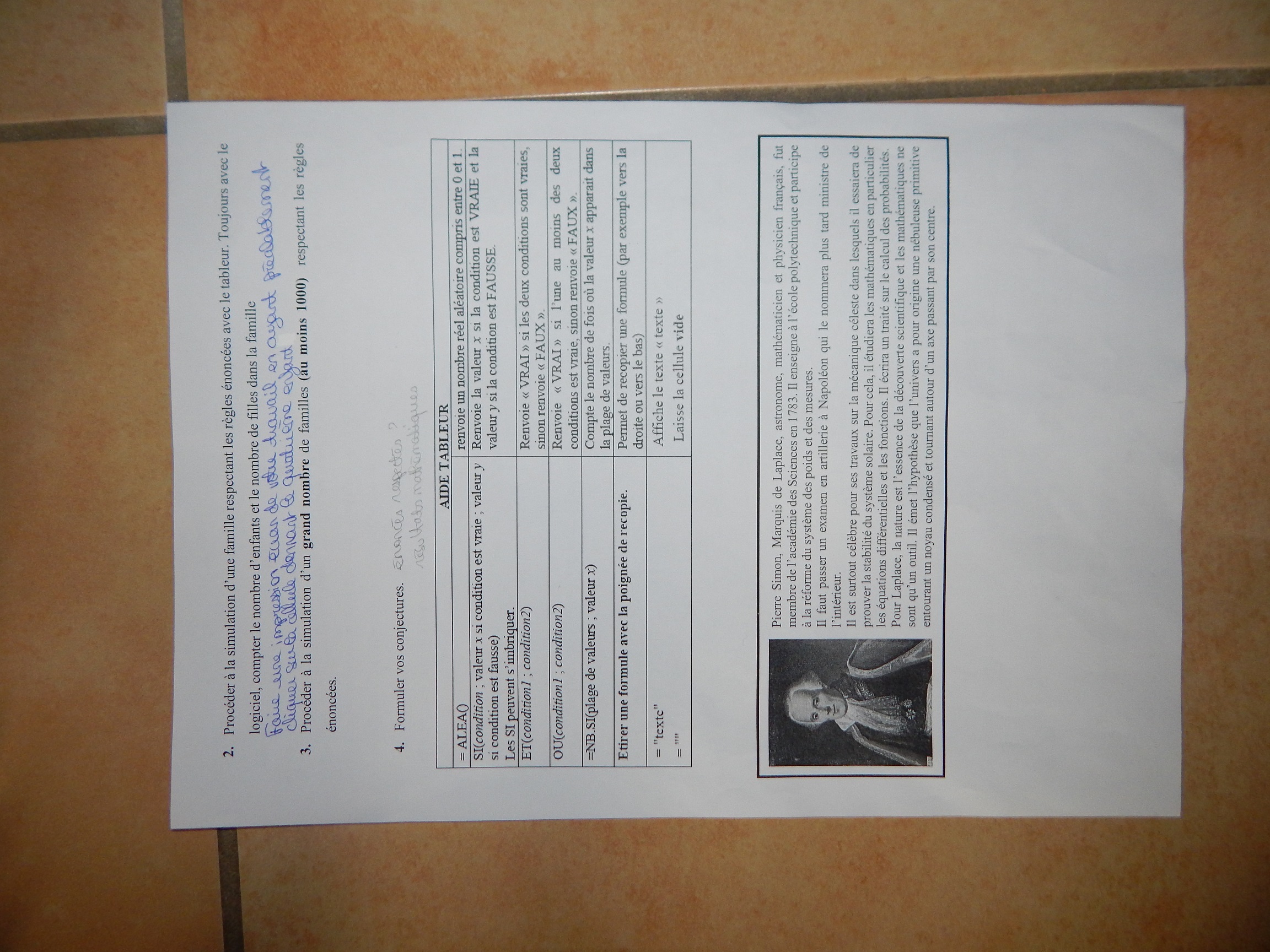 J'ai essayé quelque chose pour la première étape du tableur = ALEA()