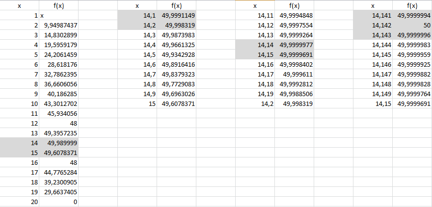Tu devrais faire avec un tableur en modifiant le pas à chaque étapes pour faire ton encadrement.