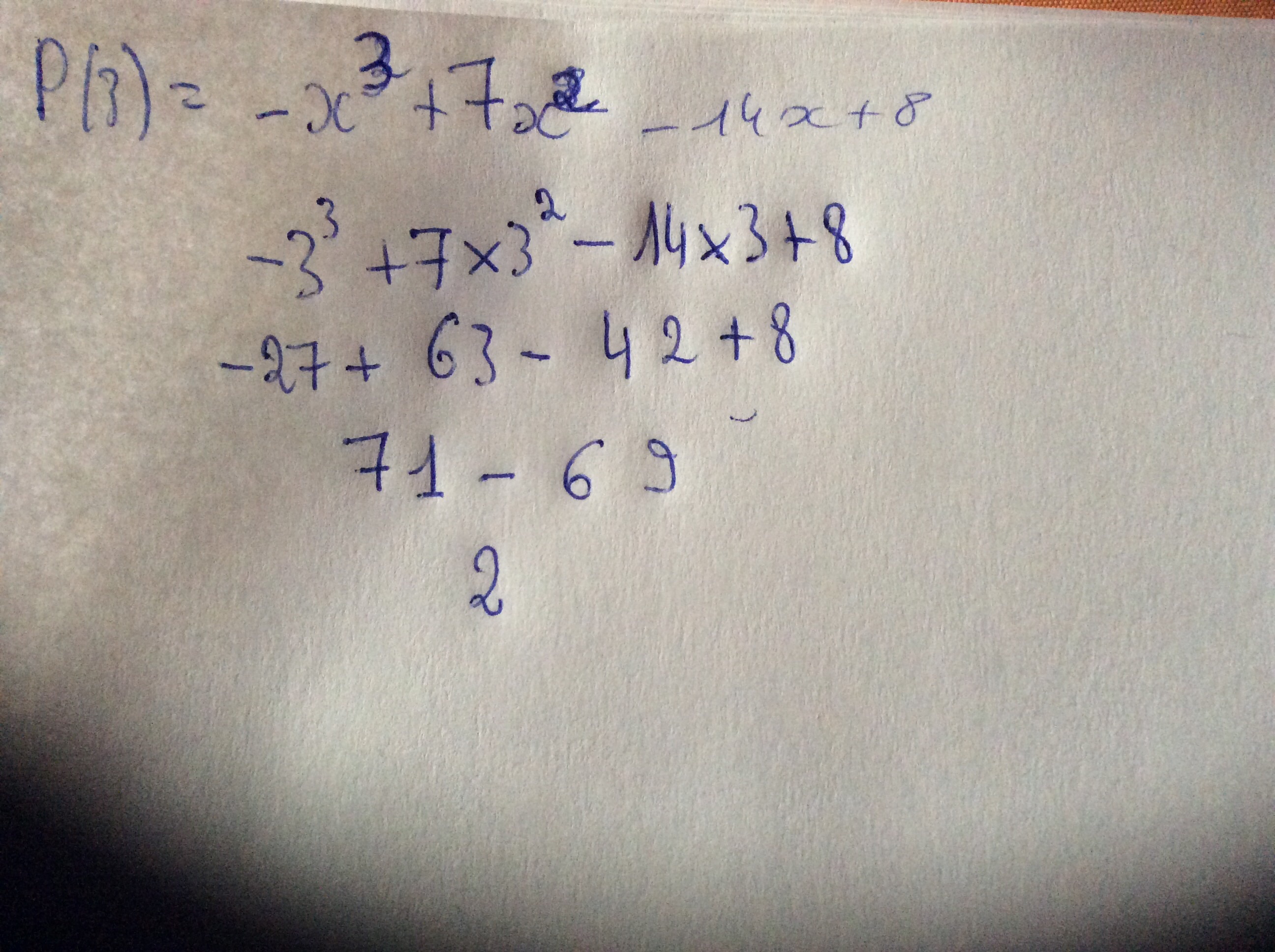 \(P(x) - P(2) = -x^3+7x^2-14x+8-(-2^3+7\times 2^2-14\times 2+8)\)