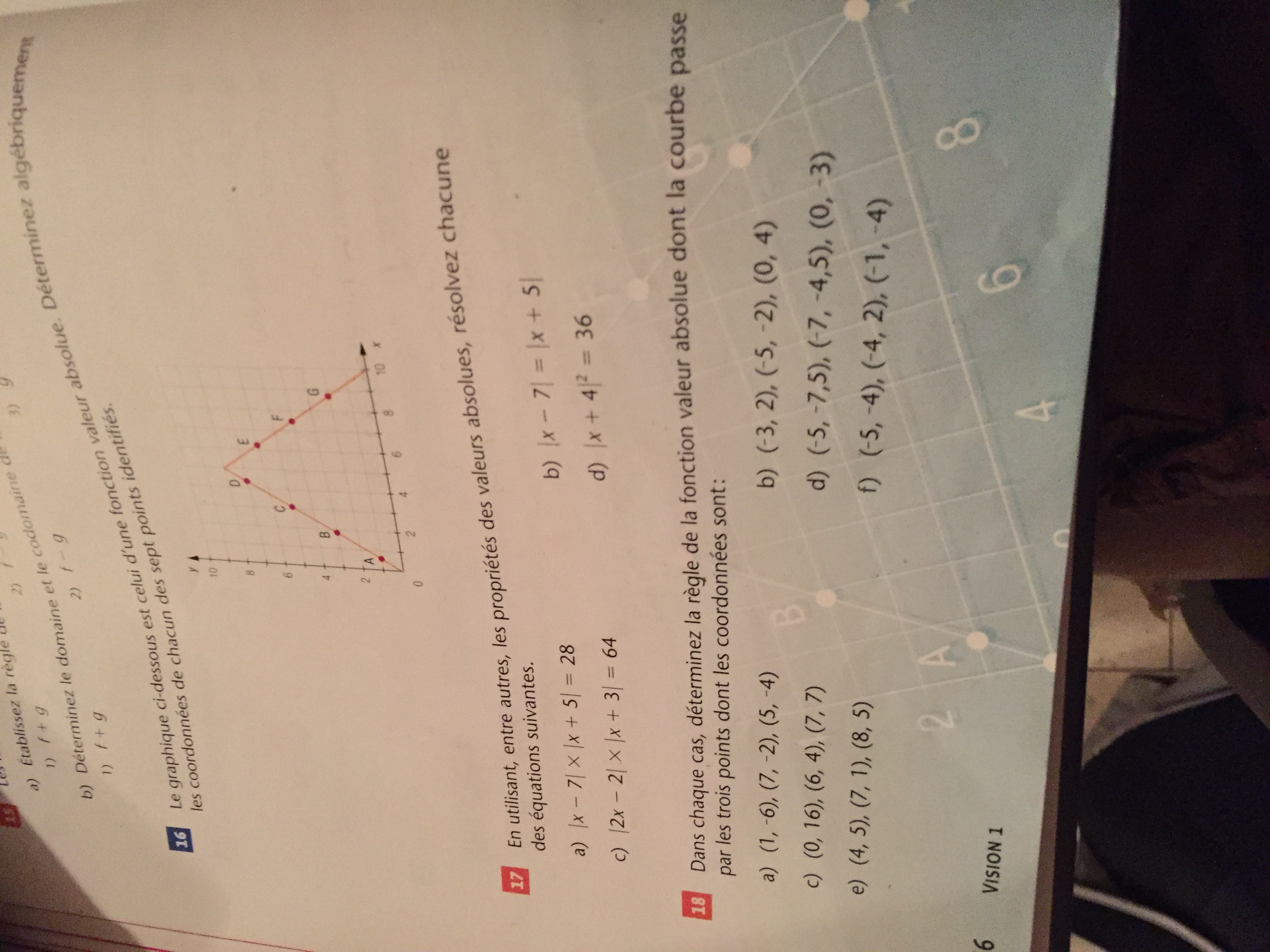 Alors pour le numéro 18) au complet j’ai rien compris mais sachant qu’il y a 3 points est ce que le point milieu correspond au sommet? Sinon pouvez me donnez un support par exemple pour le a) pour que j’arrive avec les autres en me disant quoi faire car la j’ai aucune idée par quoi commencer.