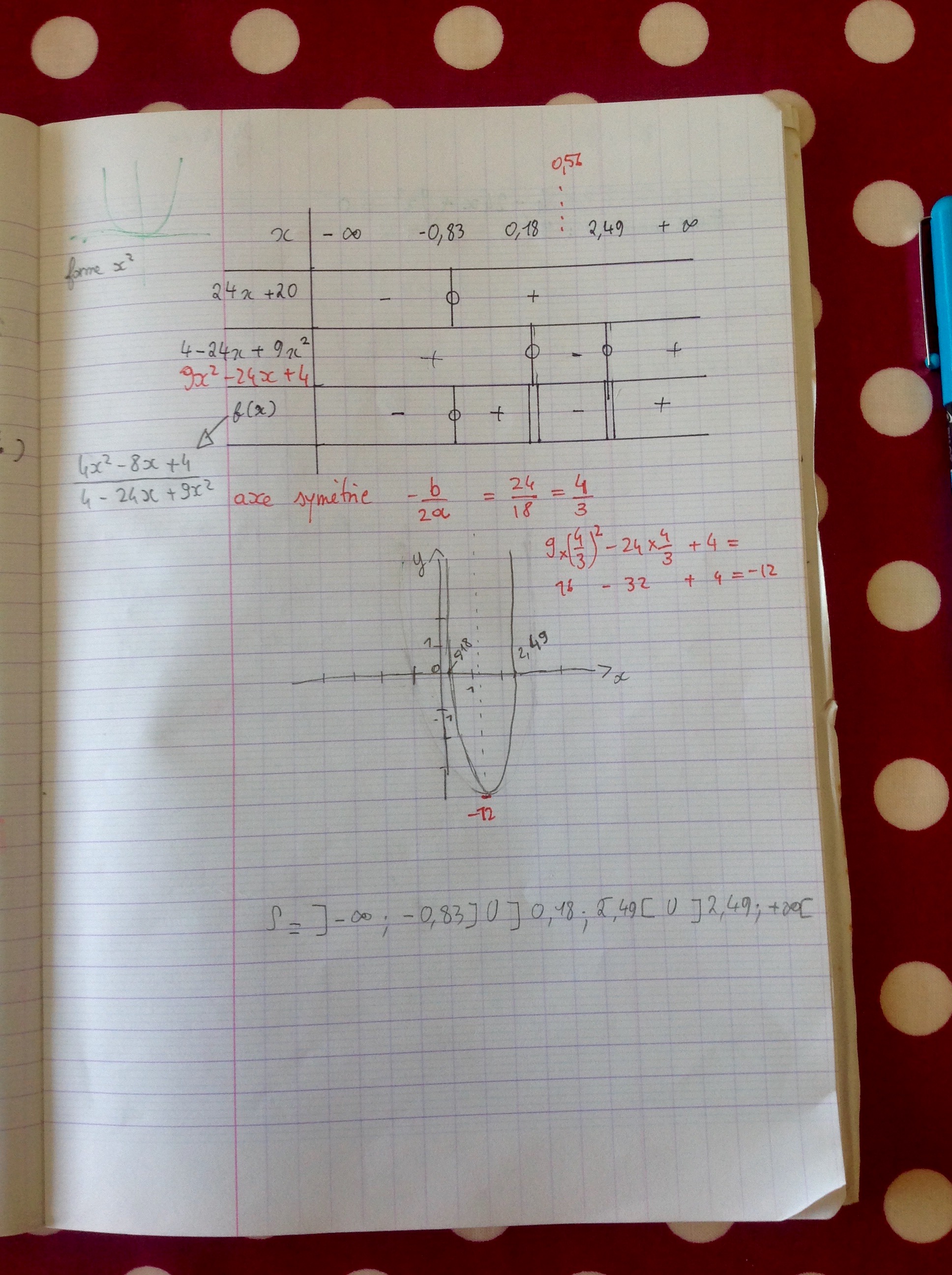 Je dois m'arrêter là ? Et mettre numérateur et dénominateyr dans un tableau de signes en disant 9x-12 = 0