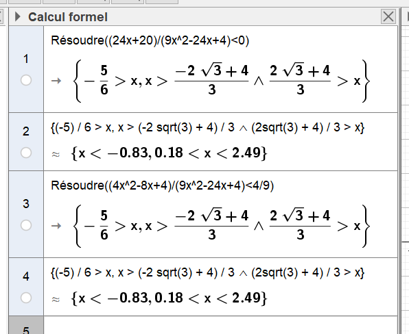 Alors après la mise sur même dénominateur, distribution et réduction je trouve (2 / 9x-12) ( 12x - 14 / 9x -12 ) > 0