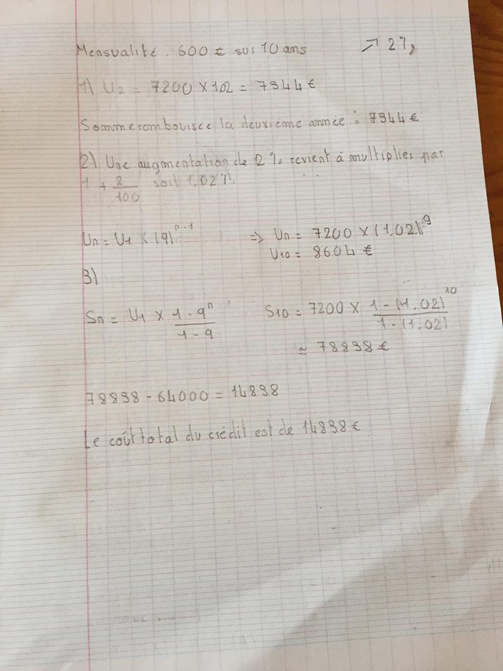 Attention à ce que tu écris U1 est la somme remboursée la première année soit 7200