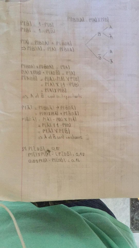 Je fais un nouvel exercice sur les probabilités, et je n'arrive pas à faire la dernière question.