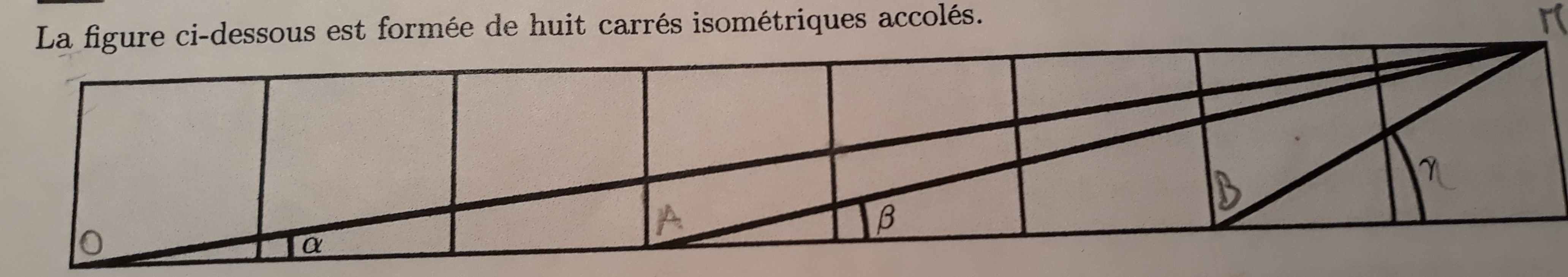 Ps : la question du DM est : les angles alpha, béta et gamma sont en radian ; montrer que alpha + béta + gamma = pi sur 4