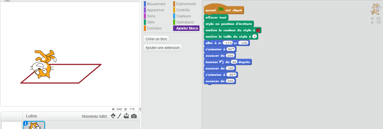 je doit construire un parallélogramme sur scratch et gros souci rien ne marche