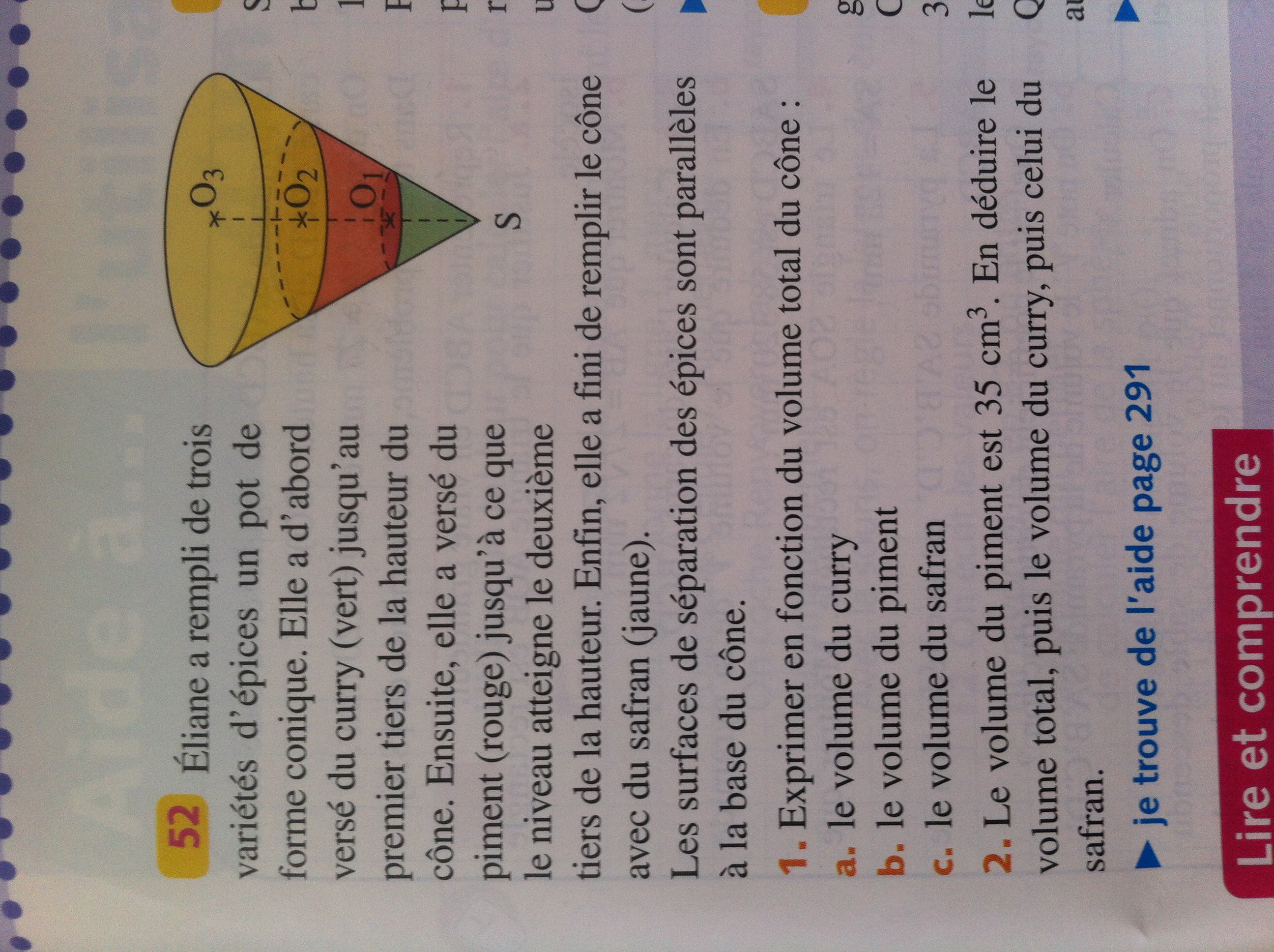 Si on regarde le volume du petit cône contenant le Curry, ses dimensions (hauteur et rayon) ont été divisées par 3.