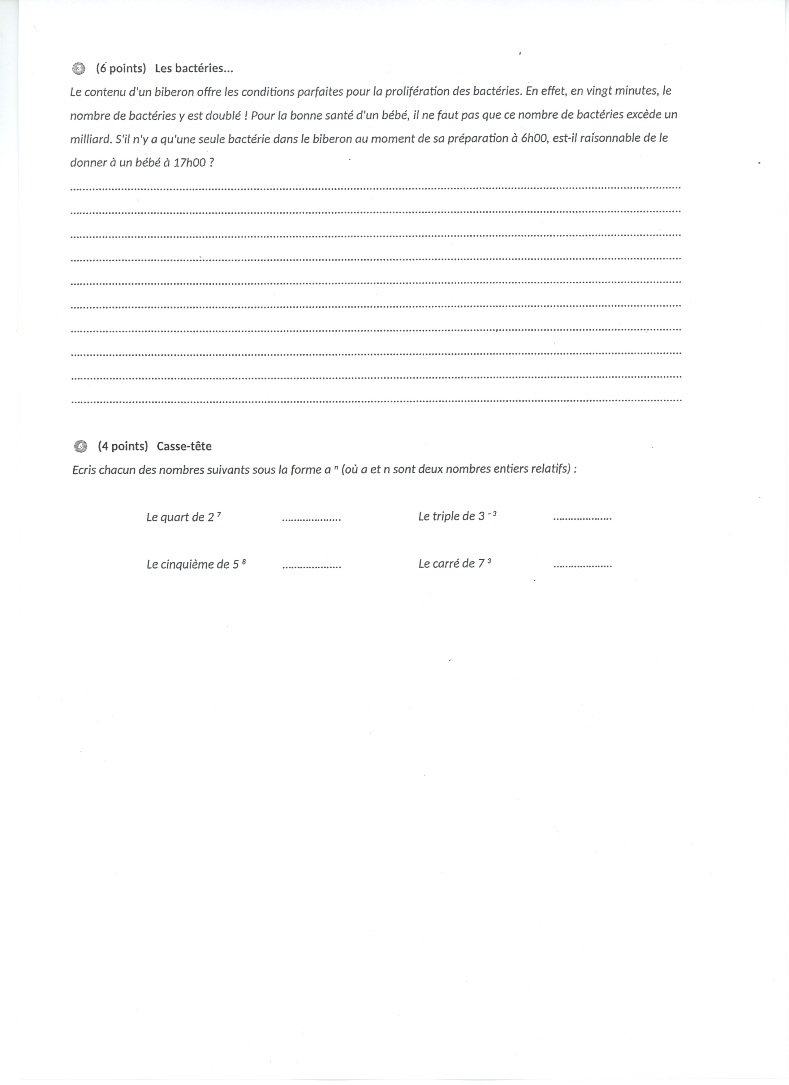 1) le quart de 2 puissance 7 Ma proposition : 2 puissance 7 2 puissance 7