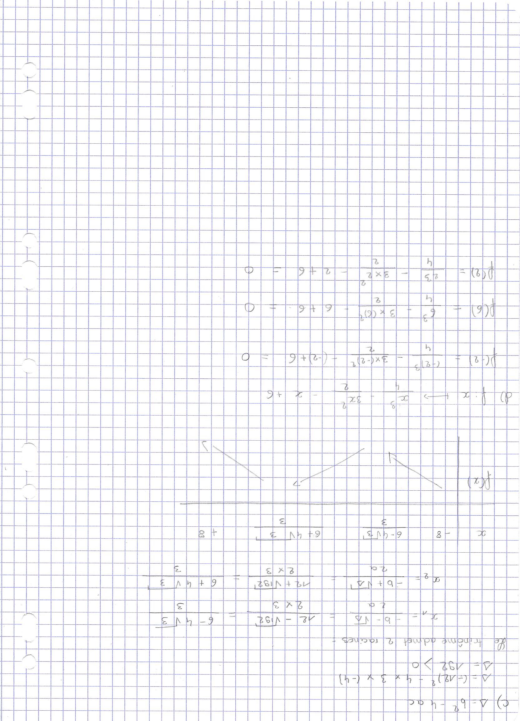 Nous n'avons pas vocation à corriger les devoirs des élèves; toutefois j'ai pris le temps de regarder ton travail et en effet tes variations sont incorrectes (tu aurais pu vérifier toi même à la calculatrice et voir qu'il y avait un problème). Tu n'as pas bien appliqué la méthode du signe d'un trinôme du second degré : lorsqu'il y a deux racines distinctes (ce qui est le cas ici), le trinôme est "du signe de a à ........". Je te laisse revoir seule cette notion et corriger ton erreur.
