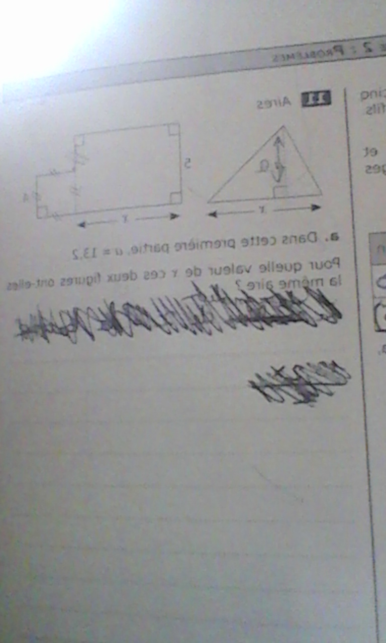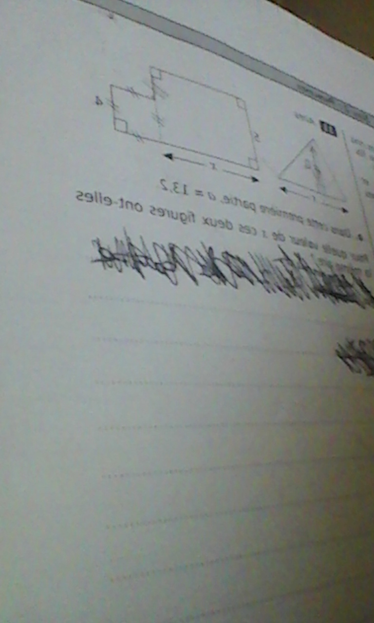 J ai un triangle quelquonque et un rectangle et il me demande a=13,2