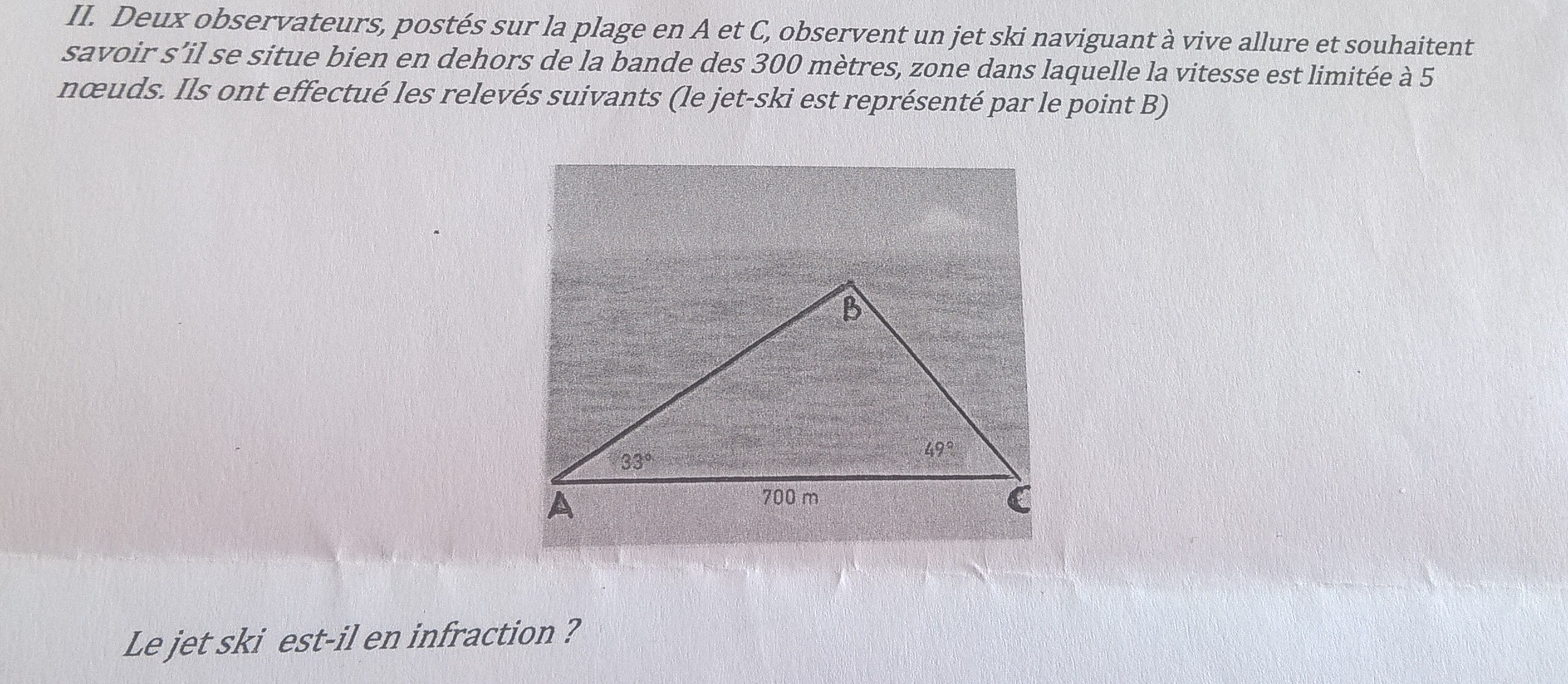Oui car c'est BH la distance à laquelle se trouve le jet ski de la plage
