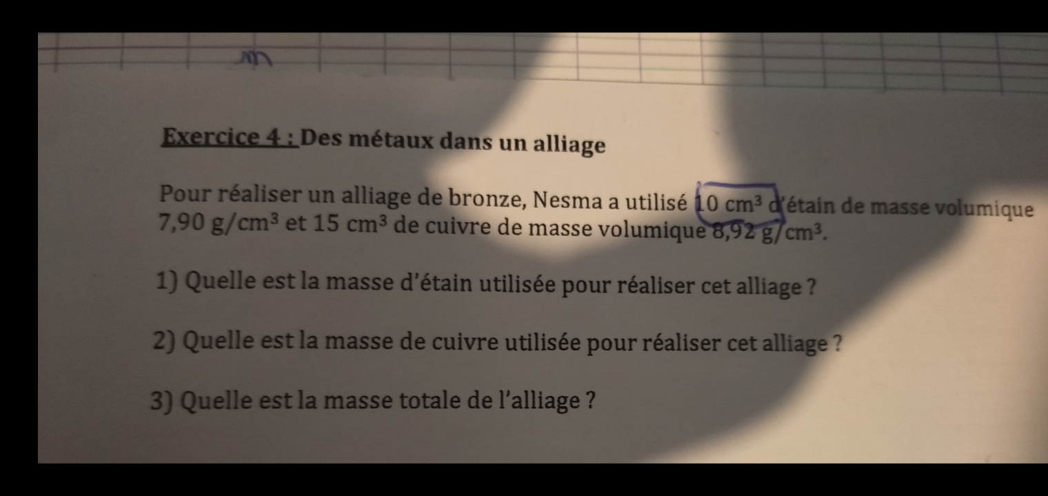 Après les vacances j'ai oublié comment utiliser la masse volumique je vous demande expliquer cet exercice