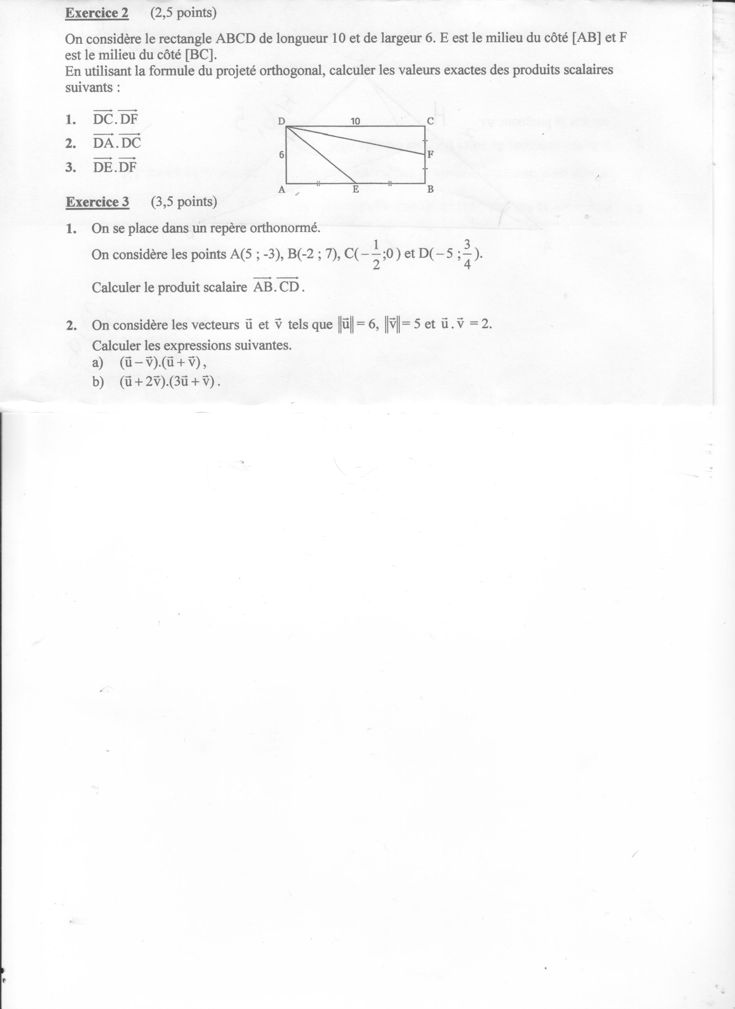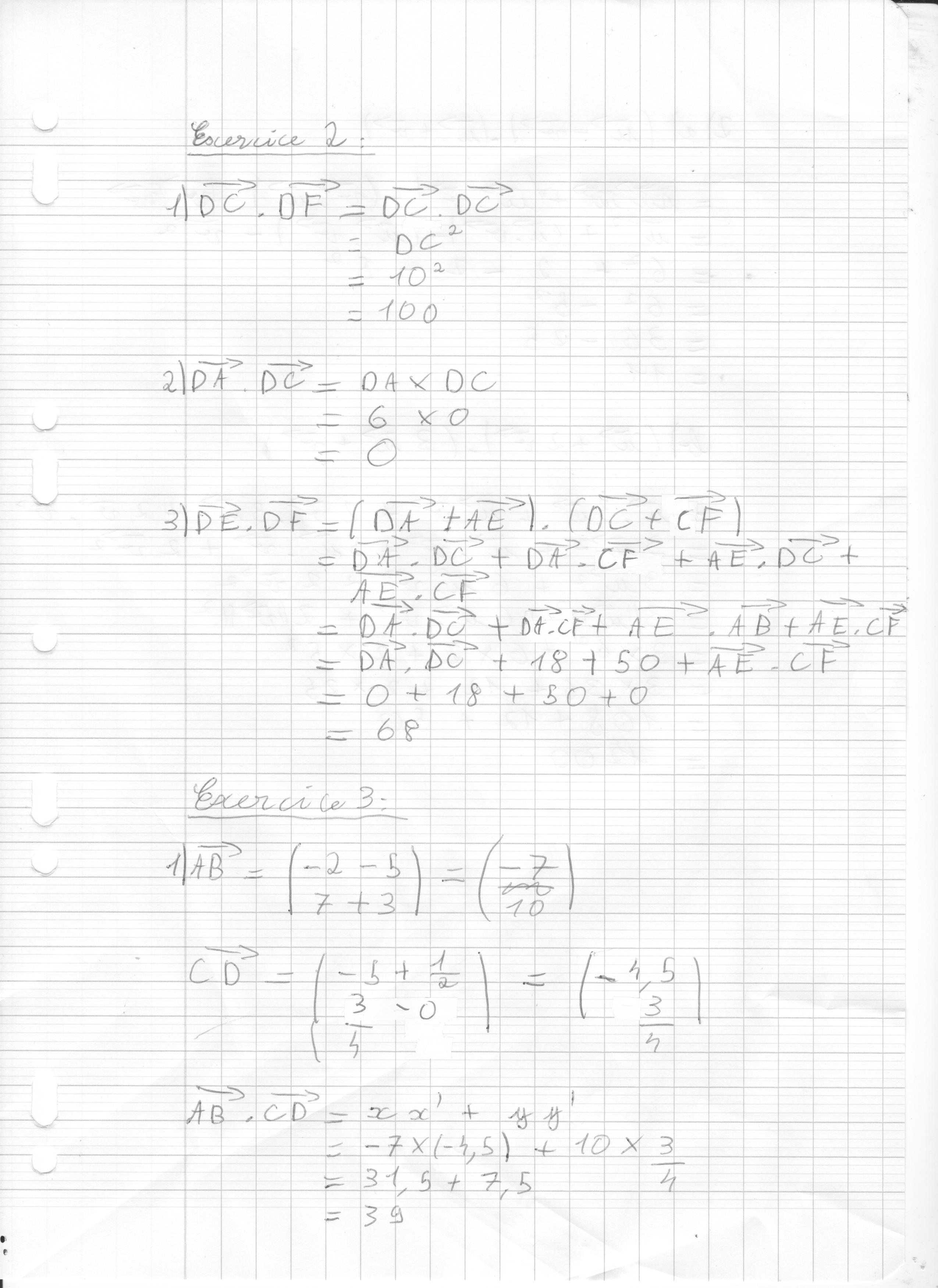 A l'exercice 1, 2), le produit scalaire est nul, mais ton calcul intermédiaire est incorrect.