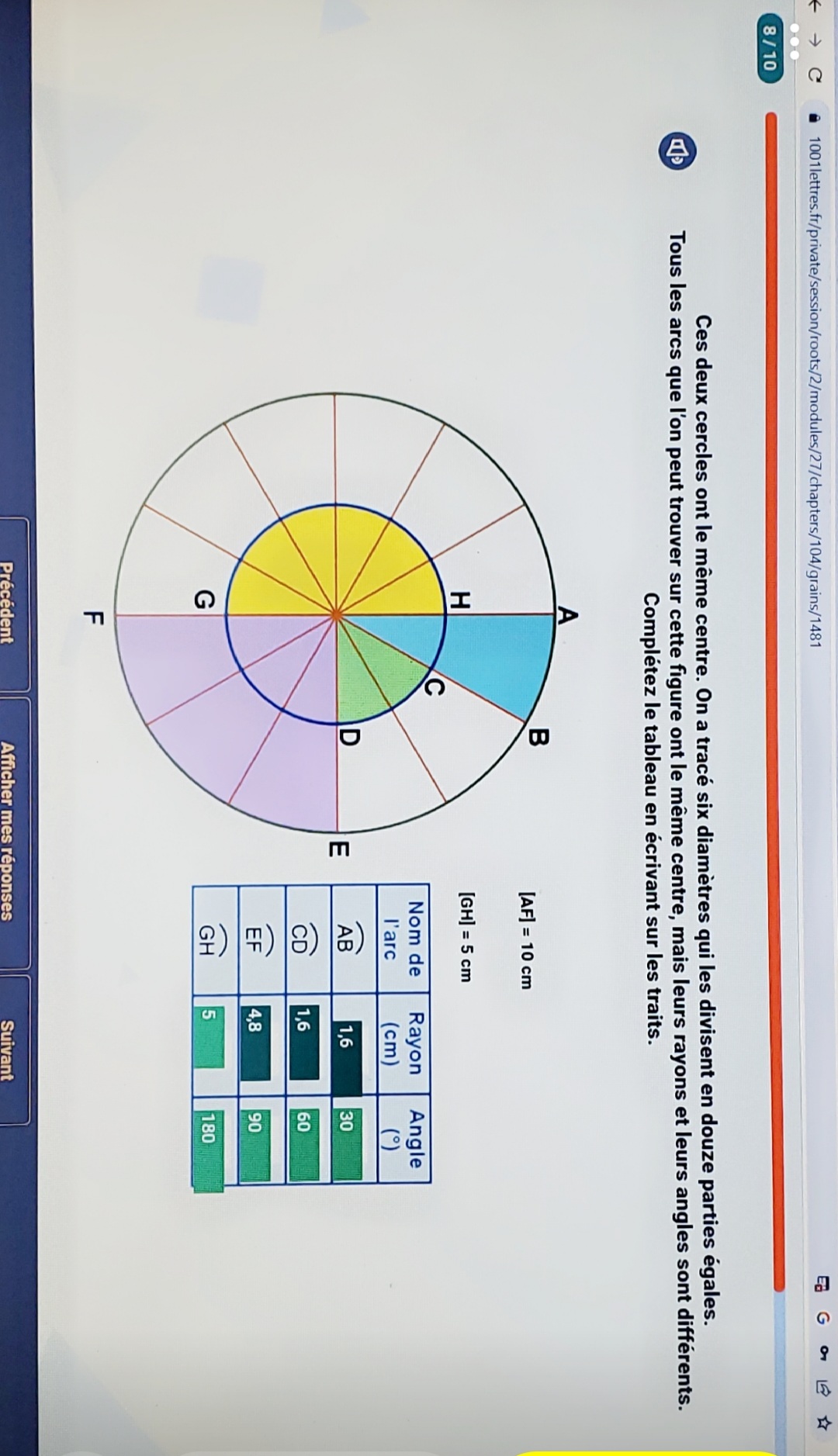 Bonjour, j'ai récemment réalisé un exercice de géométrie sur 1001lettres. Le problème est que j'ai eu faux sur un exercice mais je ne sais pas comment on arrive à 1.6 cm de rayon sur le tableau. Pouvez-vous m'aider s'il vous plaît ?
