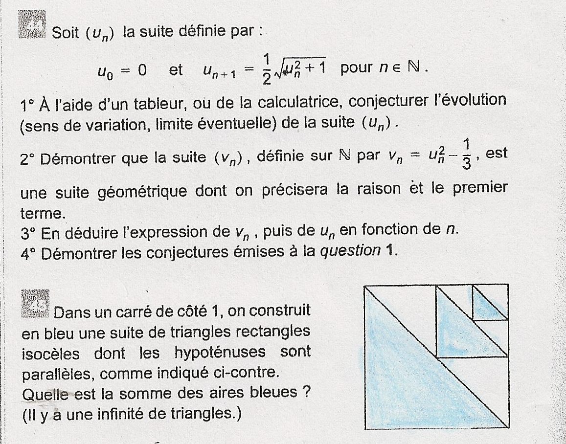 Je viens de faire ma rentrée et notre professeur de math nous a donné deux exercices de révision sur les suites. J'ai beau chercher sur des livres et des sites je n'arrive pas à les résoudre. Les exercices sont dans le fichier joint.