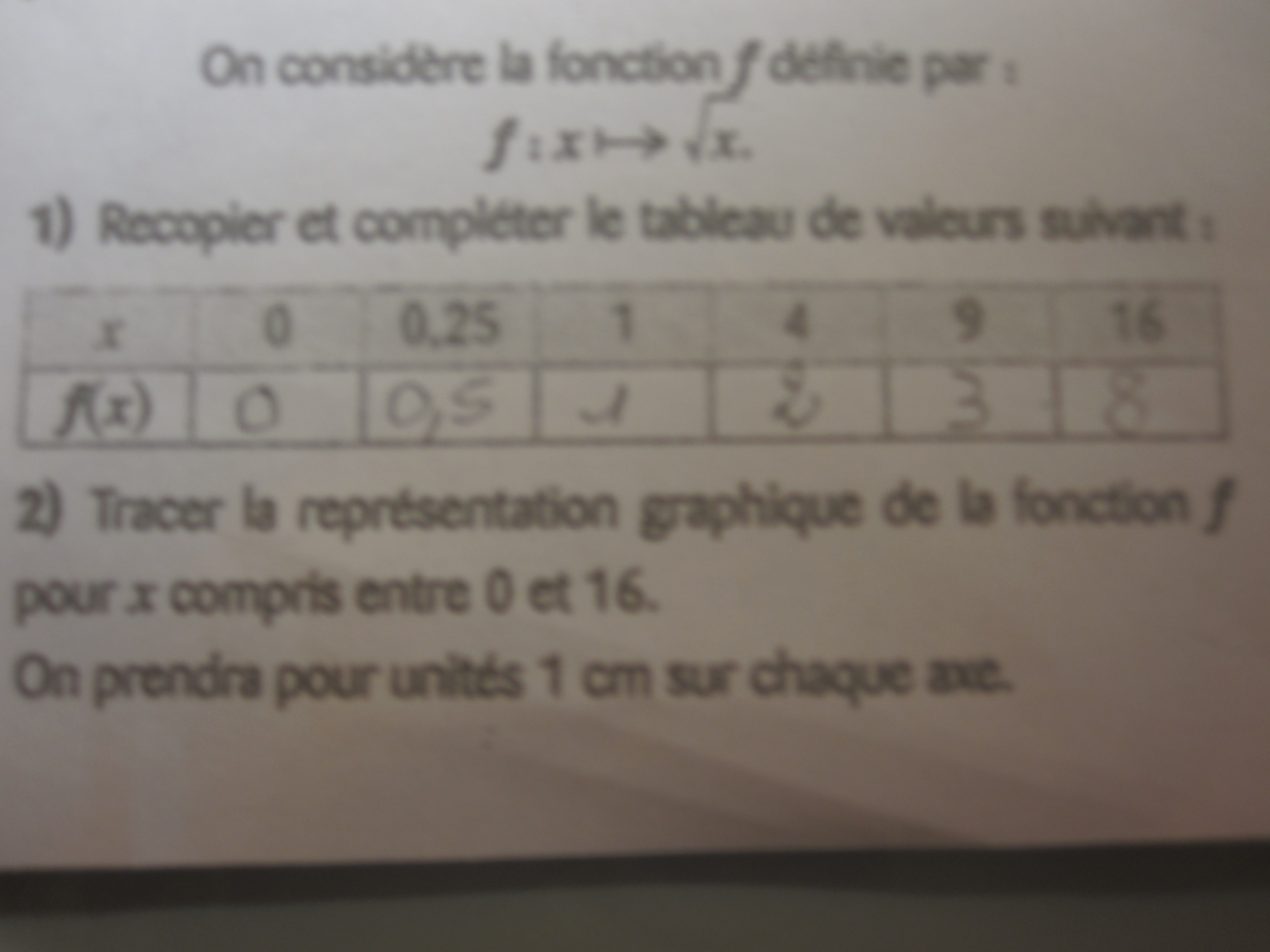 vous devez d'abord dans votre repère placer les points dont les coordonnées sont données par le tableau.